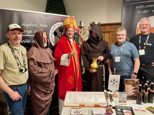 Hoher Besuch! Der Bierschof mit seinen Aprosteln und Christian mit Roland am Stand